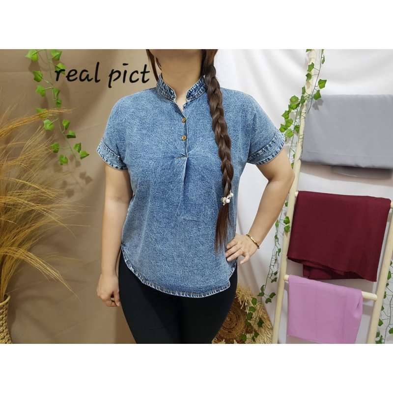 Jual Blouse Jeans Atasan Wanita Lengan Pendek Semua Ukuran Di Seller Rubby Beauty Indonesia Blibli